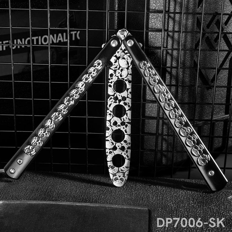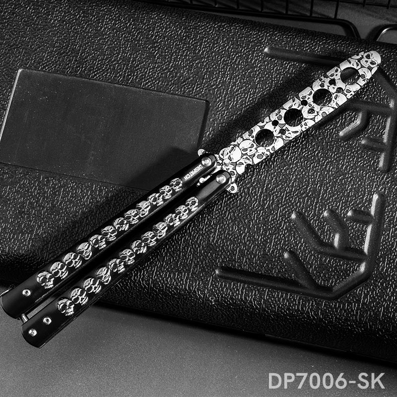 Black Practice Not Real Blade Balisong for CSGO Training with Skull Pattern