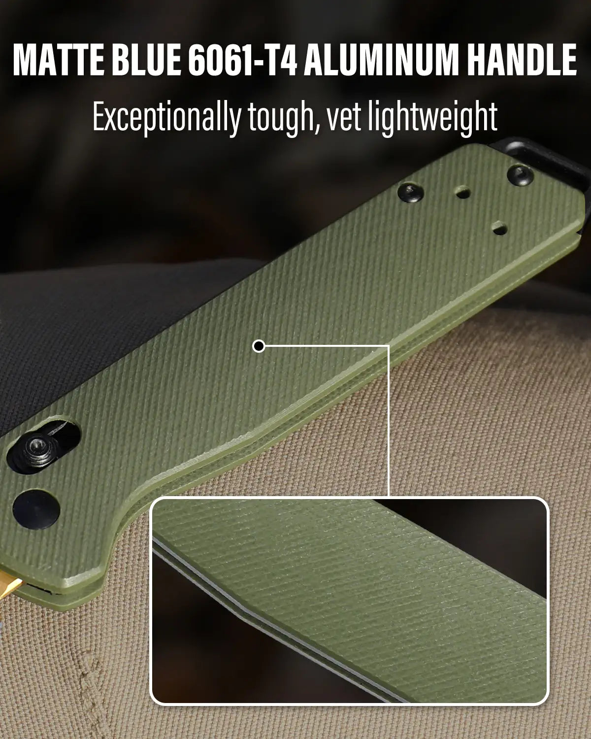 The lightweight G10 handle features a refined twill pattern for enhanced grip and control. A full four-finger grip and jimping detail ensure stability in all conditions.
