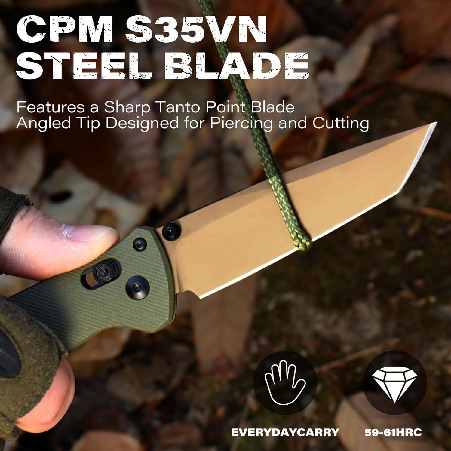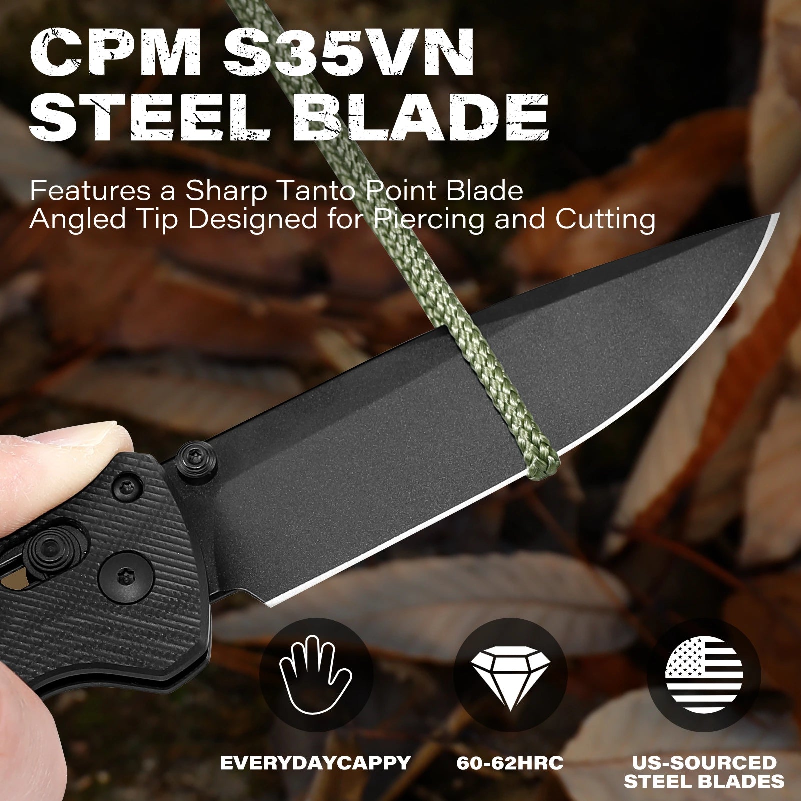 RBLACK 3.3" Tanto EDC Folding Knife with CPM S35VN Blade, Axis Lock G10 Handle