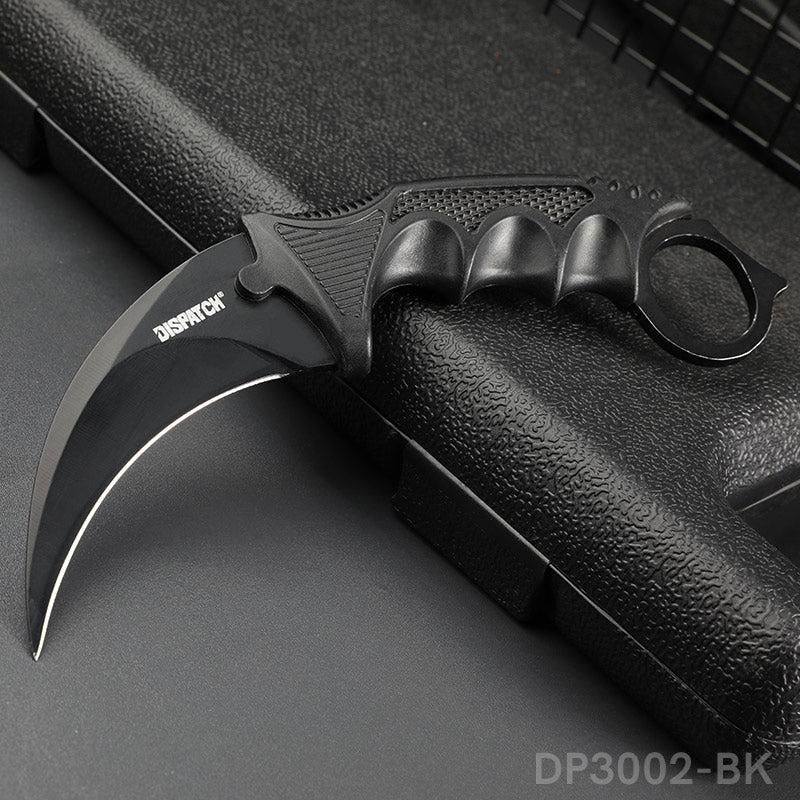 I've been curious about karambits for a while now. Decided to get myself a cheap knife to get a feel for it and decide if I wanted to invest in a really nice one. Dispatch made a pretty surprising knife. The metal has some marks in it and the plastic handle came with marks and had also earned some marks from me.